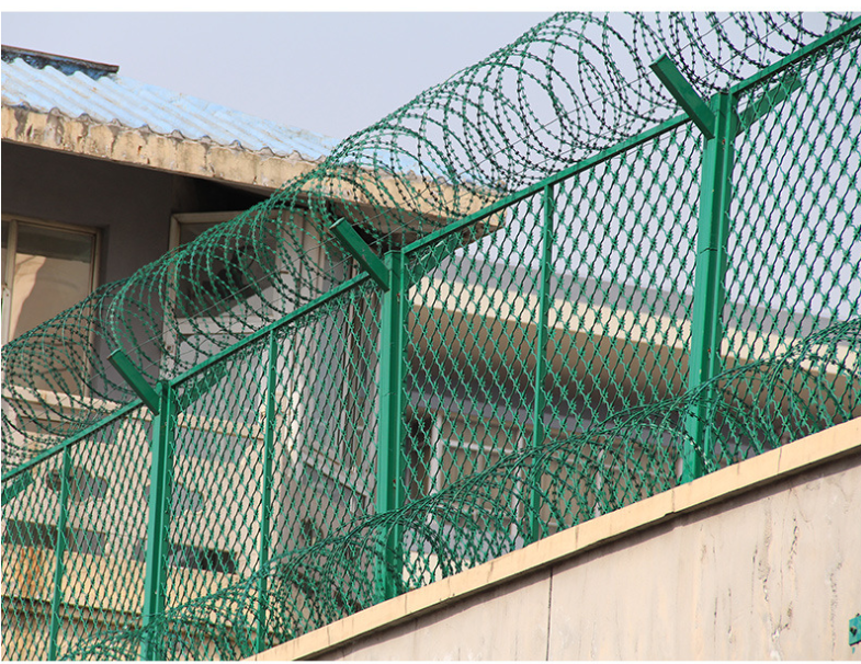 強制隔窩戒毒所需更按照加裝了蛇腹型刀片刺繩的安全隔離網,一般常見規格為:邊框采用2030mm矩形管,立柱采用50*50或者60*60矩形方管焊接而成,上面裝有刀片刺網(刺絲濃籠),蛇腹型刀片刺繩具有陽嚇防觸碰的效果,材質堅硬、高張力、高強度、不易觸摸等能達到極好的隔離效果。外形尺寸-般有2.5米高2/2.52.5*/2.5*3*/3*3米等