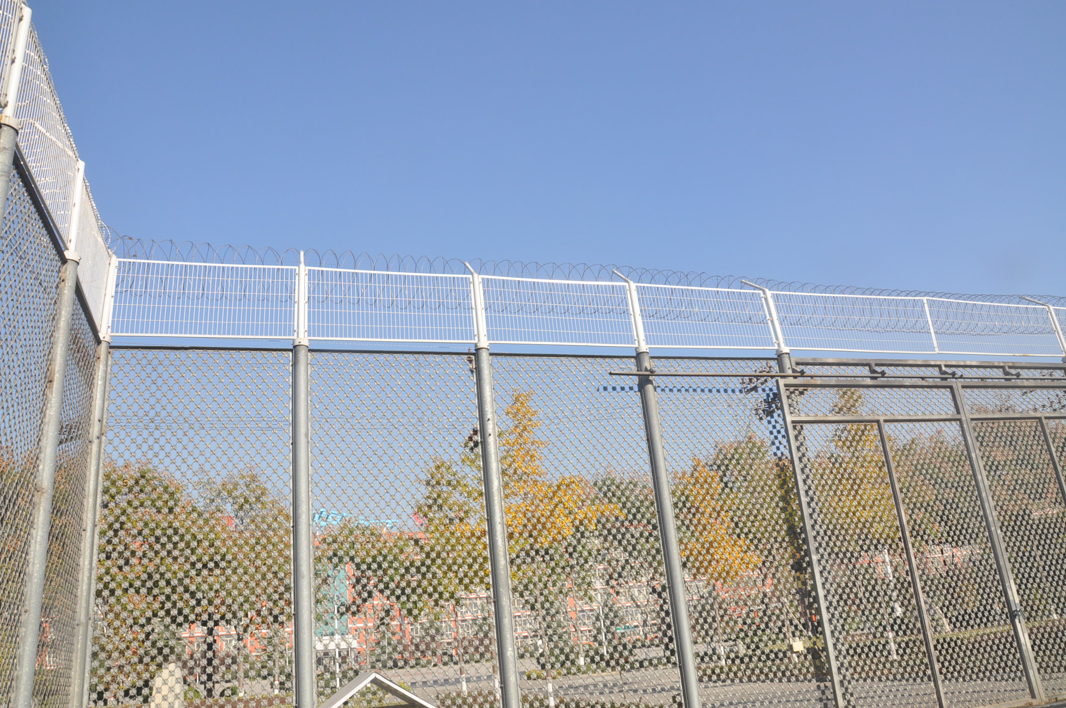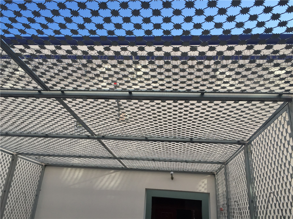 監(jiān)獄梅花刺隔離網(wǎng)又叫沖壓刺隔離網(wǎng)、太陽花刺片隔離網(wǎng),行業(yè)內(nèi)簡稱梅花刺網(wǎng)。其特點為堅固牢靠、防止攀爬等。梅花刺隔離網(wǎng)一般用于監(jiān)獄大門,探監(jiān)門,人員通道兩邊的隔離網(wǎng),由于其成本造價高,所以還沒有廣泛替代焊接式隔離網(wǎng)。1、梅花刺片:梅花刺片直徑不小于7.5cm(直徑6cm、7cm、8cm),刺片厚1.5mm,采用Q235低碳鋼板沖壓成型。梅花刺片用氬弧焊將梅花形刺片焊接在美格網(wǎng)的節(jié)點上,形成刺形保護,有效的防止了手握腳攀。
